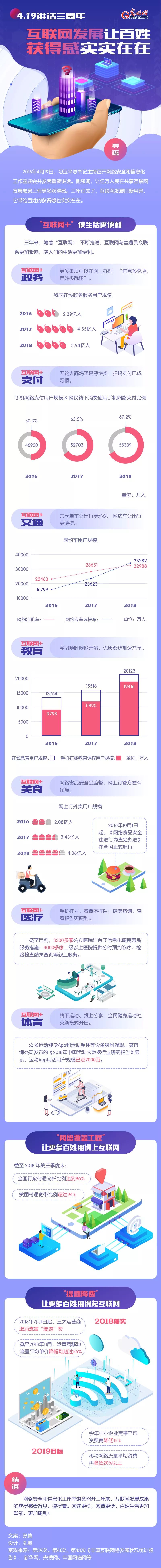 2016年4月19日召开的“网络安全和信息化工作座谈会”上,习近平总书记发表重要讲话,他强调:“推进网络强国建设,推动我国网信事业发展,让互联网更好地造福国家和人民;建设网络良好生态,发挥网络引导舆论、反映民意的作用;增强互联网企业使命感、责任感,共同促进互联网持续健康发展。”三年来,互联网发展日新月异,这些话不仅在网信事业的发展上得到了深刻体现,也带给老百姓实实在在的获得感。