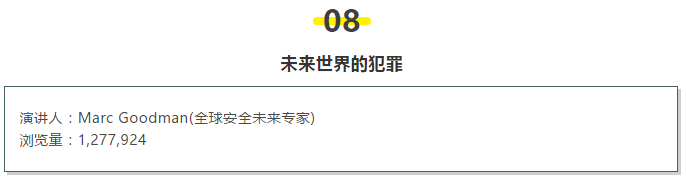 在该演讲中,前执法人员、现全球安全专家Marc Goodman,讲述了一些犯罪分子利用技术发挥其自身优势的实际案例,并呼吁全球公众努力构建一个更加安全的技术世界。