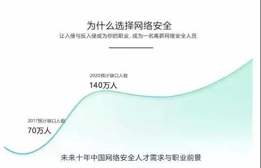 据有关调查数据显示,2018年我国网络安全人才的缺口已经达到90万以上,缺口率高达95%。预计到2020年,这一数据将增长至140万至200万,而现阶段我国高等院校学历教育培养的人才只有3万人左右,行业从业人员仅不到10万,远远无法满足市场需求。