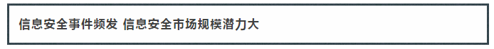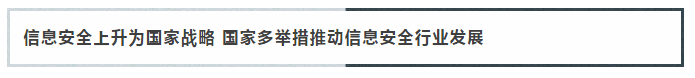 随着《网络安全法》和《国家网络空间安全战略》的发布,信息安全行业面临空前的发展机遇。2016年12月27日,《国家网络空间安全战略》发布,强调“没有网络安全就没有国家安全”,网络安全的重要性和意义不断得到提升,信息安全产业迎来更大的发展机遇。2017年6月1日,《中华人民共和国网络安全法》正式实施,网络安全有法可依、强制执行,网络安全市场空间、产业投入与建设步入持续稳定发展阶段。2018年3月30日,中央网信办、证监会联合发布了《关于推动资本市场服务网络强国建设的指导意见》,明确表示推动网信企业并购重组,鼓励网信企业通过并购重组,完善产业链条,引进吸收国外先进技术,参与全球资源整合,提升技术创新和市场竞争能力。