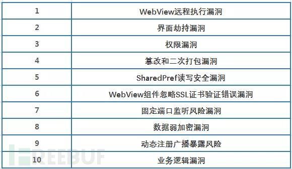 此外,基于全渠道应用监测平台,对用户危害巨大的安全漏洞进行分析,给出2017年移动应用十大高危漏洞(按照严重程度给予排名):