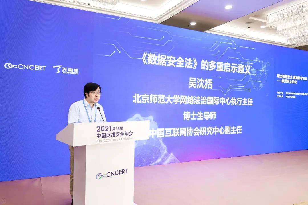 北京师范大学网络法治国际中心执行主任、博士生导师、中国互联网协会研究中心副主任吴沈括在演讲中表示,数据活动的爆炸式发展,深度重塑现时的经济发展、社会治理、人民生活,数据安全成为涉及国家安全与经济社会发展的重大问题。《数据安全法》的出台预示着数据作为国家基础性战略资源,事关国家主权、安全和发展利益,且事关国际话语权。数据活动的全方位融合拓展和复杂的数据处理结构,在培育新机遇的同时也伴生更高的安全风险,以创新为主要引领和支撑的数字经济需要完善的数据安全治理体系予以保障,同时数字政府和电子政务的升级也亟待政务数据安全管理制度和开放利用规则的全面支撑。