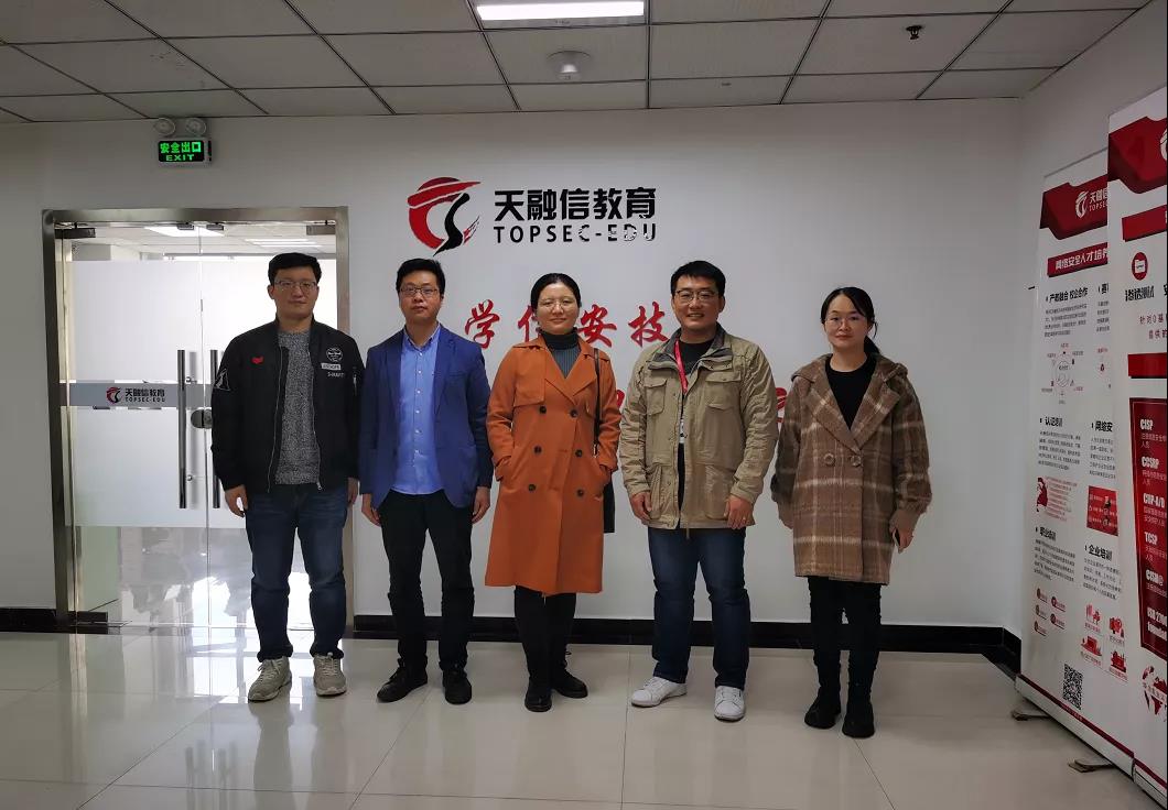 为推进校企合作,促进资源融合,10月21日下午,陕西职业技术学院电子信息工程学院网络与信息安全产业团队负责人薄璐老师一行四人莅临天融信教育及天融信科技西安分公司参观交流,天融信科技教育事业部杨总、申工及天融信教育龚经理热情接待了学院领导一行。
