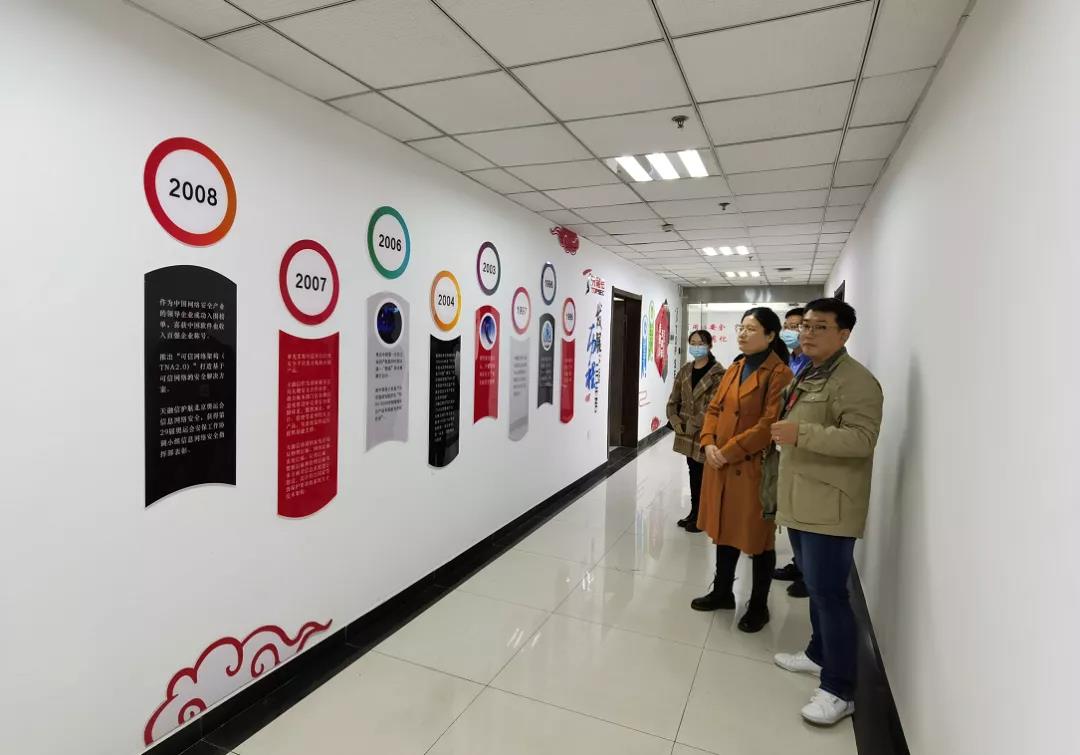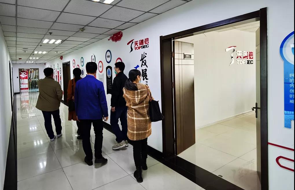 首先,在我司工作人员带领下,薄老师一行参观了天融信科技及教育公司,近距离了解了天融信科技集团的产品、技术及公司发展概况,对天融信科技集团业务及技术能力有了全方位系统的认知。