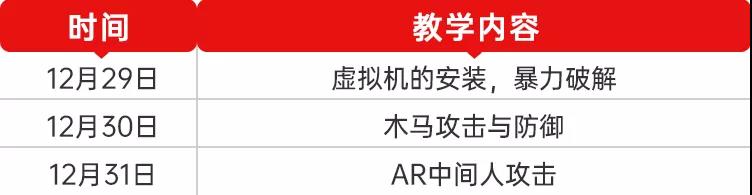 本期实训课程目标为通过培养学员学习黑客发展史、术语、简单工具的使用、踩点、社会工程学、网络协议、远控、简单的攻击思路以及未来网络安全发展趋势等知识,储备安全技能的关键理论点,使学员能够达到在工作中发现并分析常见的攻击手段的能力,提高安全意识,具备管理和维护以及使用简单的工具对企业的信息安全做出基本评测的能力,初步形成企业信息安全知识架构。