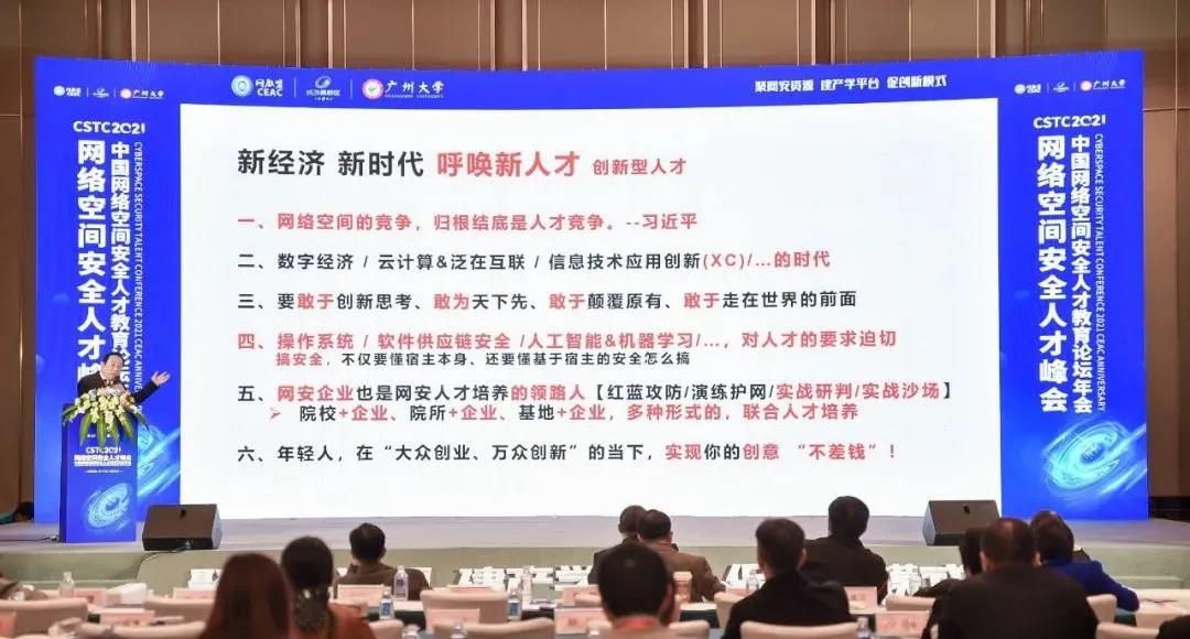 为落实国家发展战略,助推网络强国、人才强国建设,12月23日,由中国网络空间安全人才教育论坛、长沙国家高新技术产业开发区管理委员会、广州大学联合主办,天融信参与协办的2021网络空间安全人才峰会暨中国网络空间安全人才教育论坛年会在长沙隆重举行。