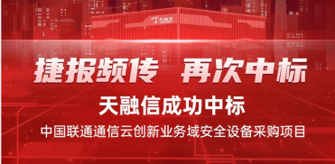 近日,天融信继中标中国电信2021年安全数据中心之态势感知模块(集团及31省)建设工程后,又成功中标2021年中国联通通信云创新业务域安全设备采购项目。
