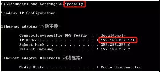 执行:ipconfig 命令