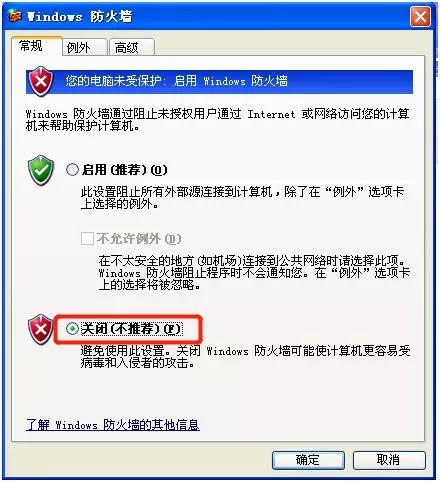 Windows XP:关闭防火墙