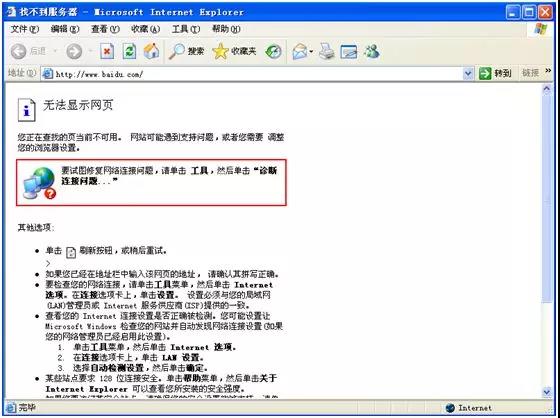 打开IE浏览器---在地址栏中输入---http://www.baidu.com(能看到百度页面)
