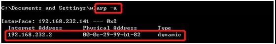 8.再次查看Windows XP上的网关MAC地址