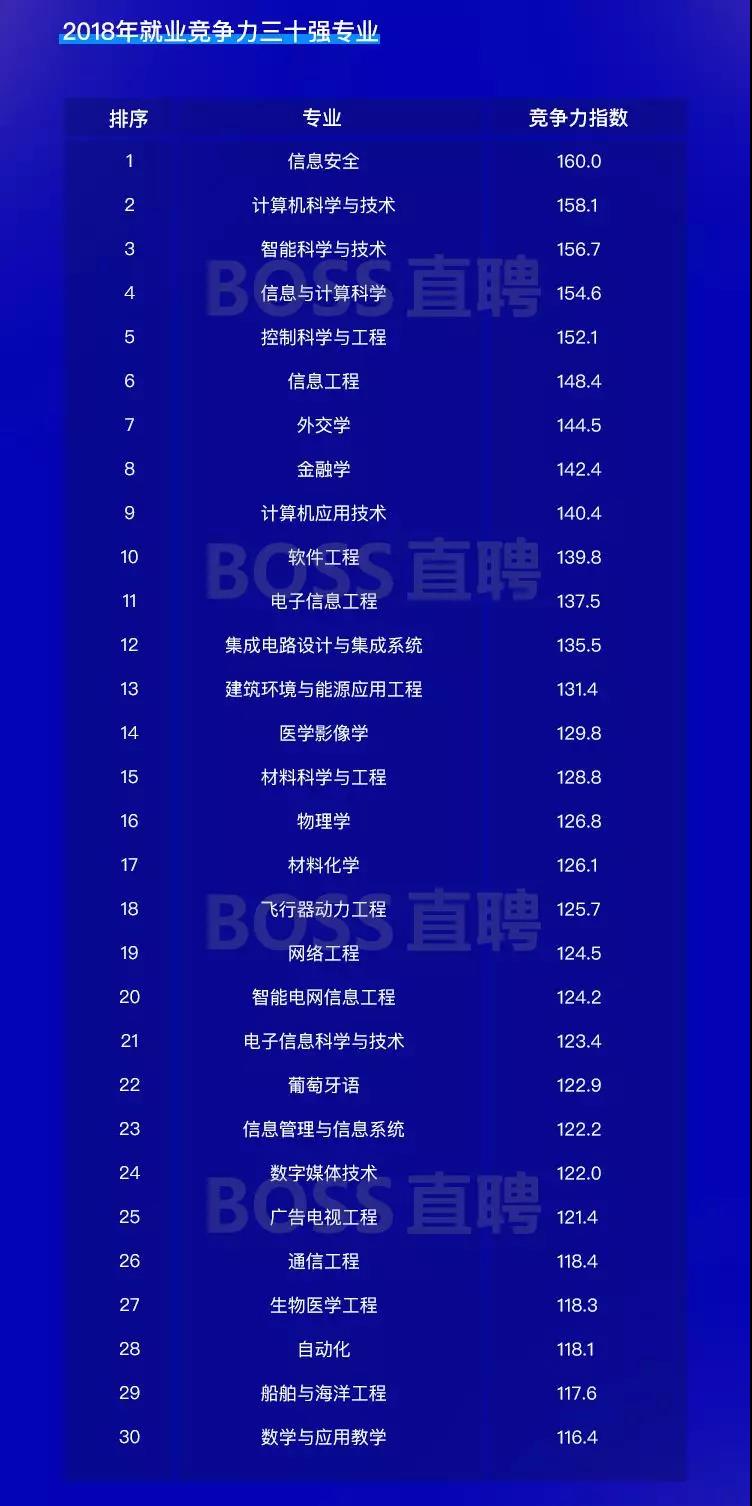 话不多说,先来看看2018年就业竞争力30强专业,嗯哼,你的专业是否上榜?