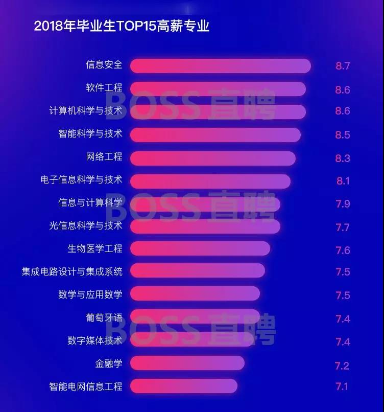 BOSS直聘研究院数据显示,教育背景为计算机科学、电子类学科的应届生,有28%求职者期望月薪高于1万元,有7.5%期望月薪高于1.5万元。