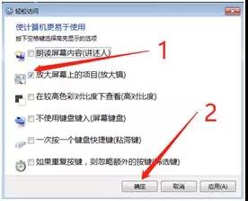 3.接下来,先选中下图中1所示的复选框,再点击确定