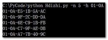 MAC = hexStr #修改此处可调整MAC地址中的限定,‘01-AA’’