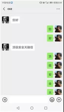 这个程序的作用是接收备注为“cxz”的好友的对话,并把内容打散,一个字一个字回复!来看一下运行效果吧: